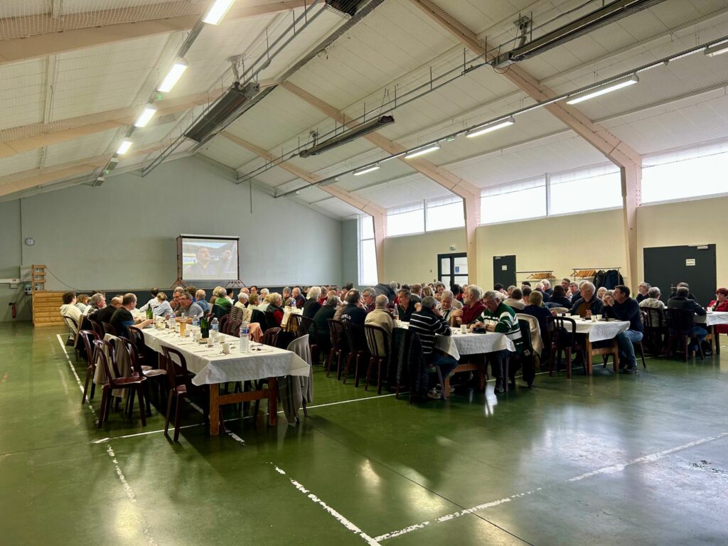 Le timing était parfait : le repas s’est prolongé avec la retransmission du match France – Écosse. Entre deux bouchées de sanglier et les encouragements pour le XV de France, l’ambiance était électrique et chaleureuse, confirmant que le repas de la chasse est un rendez-vous incontournable de la vie de notre village.